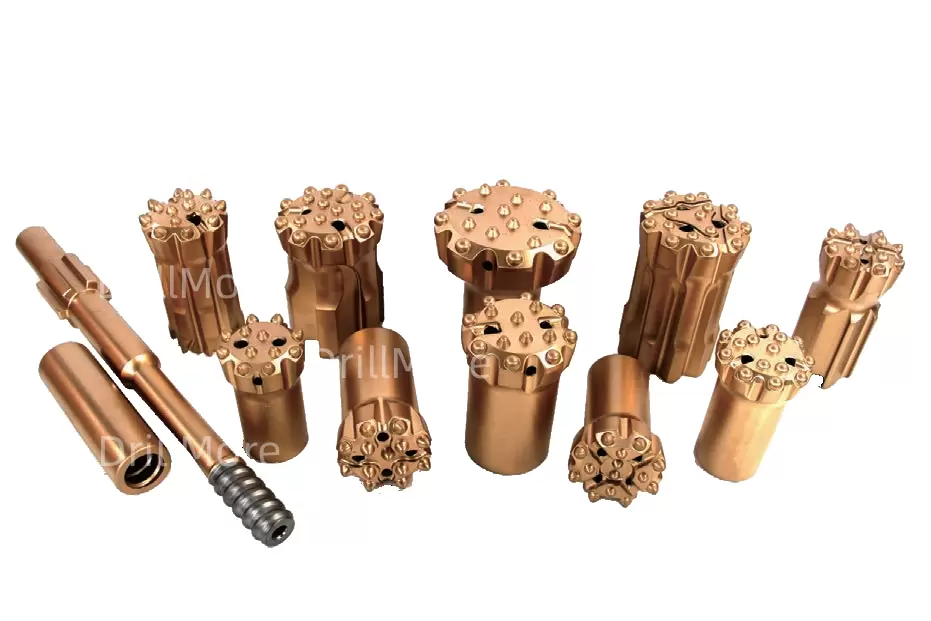 DrillMore offer different threaded Button Bit. Types including standard button bit, retrac button bit, pilot reamer bit, spherical button drill bit, ballistic button bit, flat face drill bit, drop center drill bit etc.