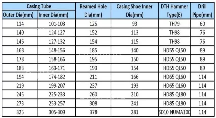 Use concentric Casing System can drill complex formation (loose, unconsolidated material such as soil, clay, silt, sand, gravel and boulders) very well. DrillMore provide the whole product range the smallest being for 114 mm (4 1/2") casing and largest size available for 1220 mm (48") casing.
