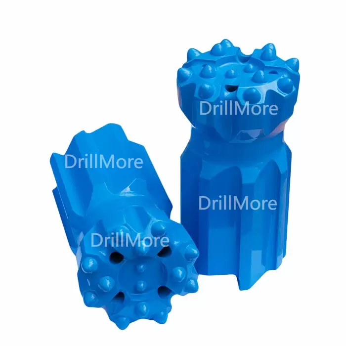 Easy-return ball-tooth threaded bits are mainly used in loose rock bodies where the rock is relatively broken, and their special trouser design can effectively assist in retracting the drilling tool, greatly reducing the phenomenon of jamming and burying the drill, and helping to improve the straightness of the drill hole.