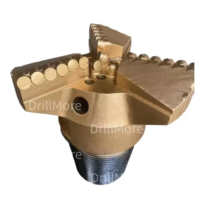 The PDC drag bit is a kind of cutting bit with fins, It has two wings, three wings and four wings. The three wing drag bit is commonly used. A drill breaks rock by scraping and shearing. The required weight on bit is very low, resulting in fast ROP and long life. The cost of drilling is greatly reduced.